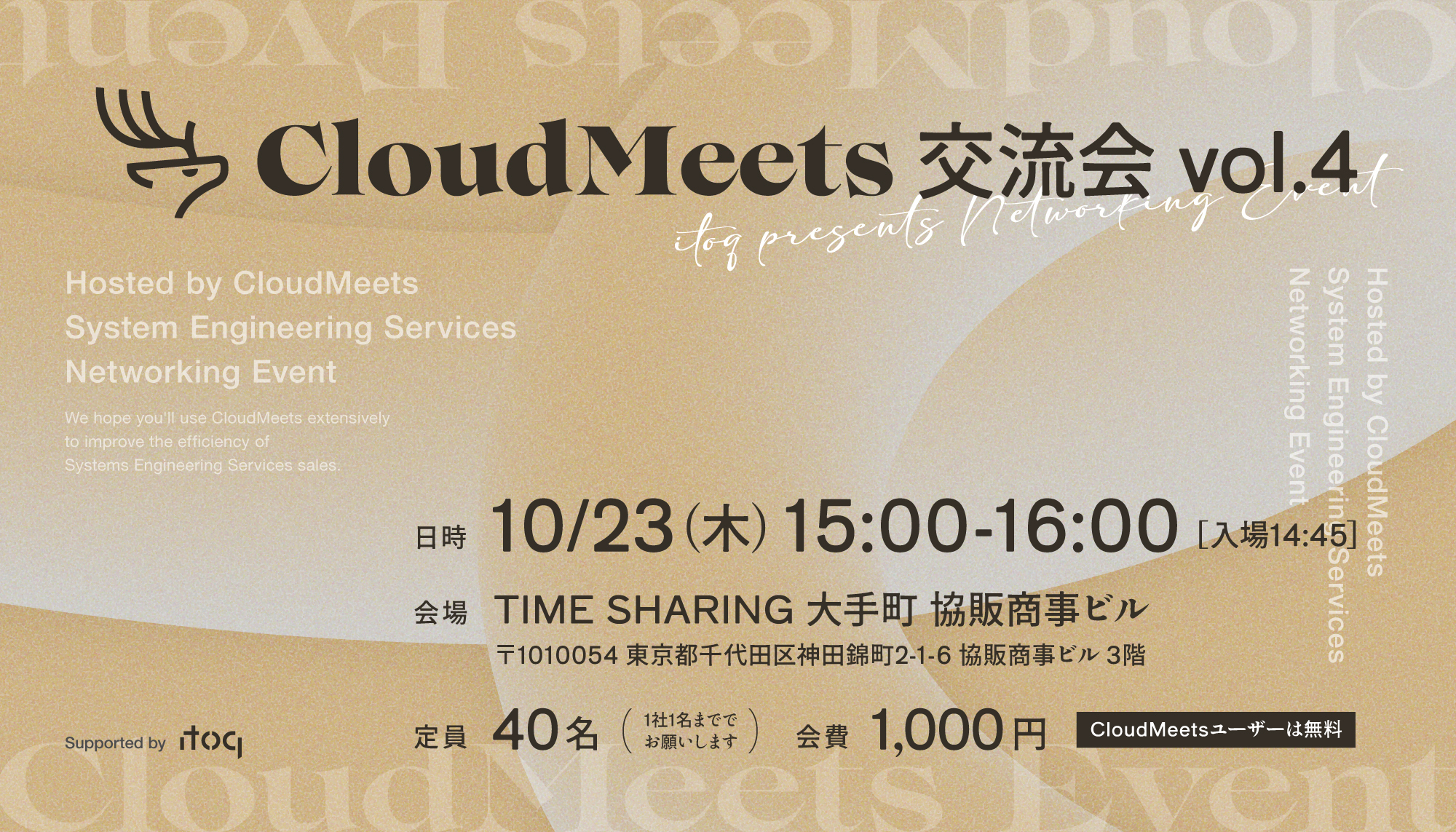 SES営業の皆さまを対象とした「CloudMeets交流会 vol.4」を下記の通り開催いたします。